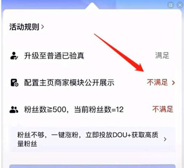 如果是【配置主页商家模块公开展示】不满足,那么我们就点击后面的【不满足】;