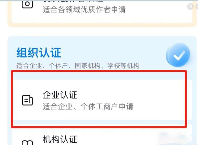 4、选择【企业认证】;