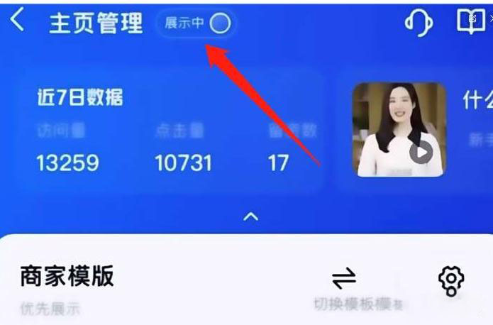填写完成后打开左上角的主页管理旁边的展示,一定得是【展示中】;